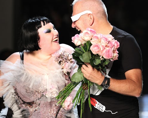 But even more importantly, the shirt marks the first time Gaultier is offering an item up to size US 30. "Big girls are beautiful and Beth is super beautiful," the designer declared in a release. "Long live the beauty with shapes, boobs, and bottoms. This is a new concept, a loose fit corset. And Beth fits it perfectly."
