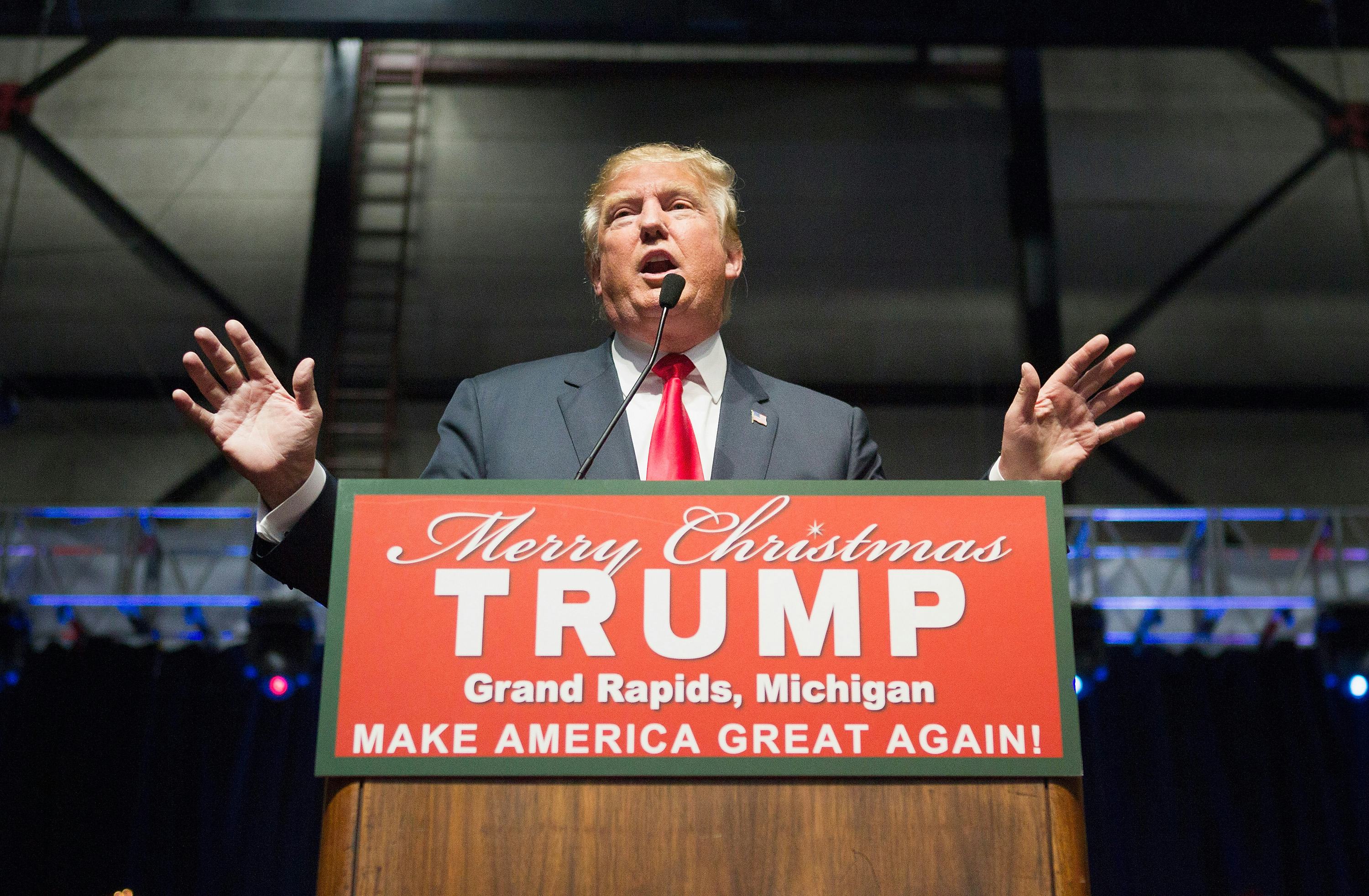 Donald Trump is facing backlash over yet another verbal gaffe. During a campaign rally in Grand Rapids, Michigan on Monday night, Trump took aim at Democratic frontrunner Hillary Clinton, stating the former secretary of state "got schlonged" by Barack Obama when she lost the 2008 Democratic presidential nomination. The rather vulgar term shocked voters and understandably outraged the Clinton campaign. Trump immediately took to Twitter to defend his wording, noting that NPR's Neal Conan used the word to describe the unsuccessful 1984 Democratic presidential ticket of Walter Mondale and Geraldine Ferraro. Conan recently spoke out about Trump's comments and unsurprisingly said that no, "schlonged" is not an OK word to use.