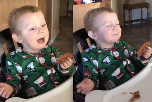 I think, as of late, we've gotten confused about the true reason for the season. Is it about presents? Is it about family? Is it about blasting the Obamas' curated Christmas Spotify playlist through your house as many times as 24 hours allows? Nay, friends — it is about all of those things, but most importantly, the magic in a child's eye. The magic in this child's eye. Just look at Easton the moment that bacon hits his baby tastebuds for the first time: