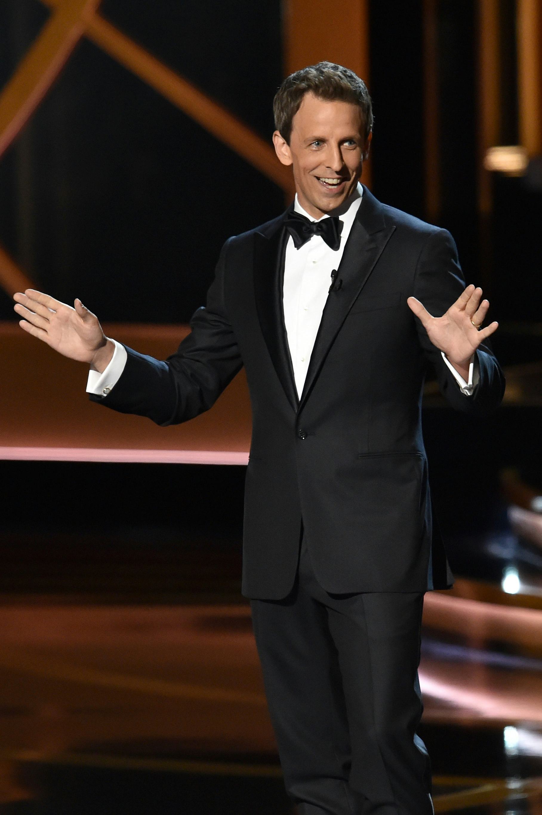 "I'm most scared about this part, about interviewing people," Meyers says. "I've never done that before. I interview people on 'Weekend Update' but they're all fictional characters."