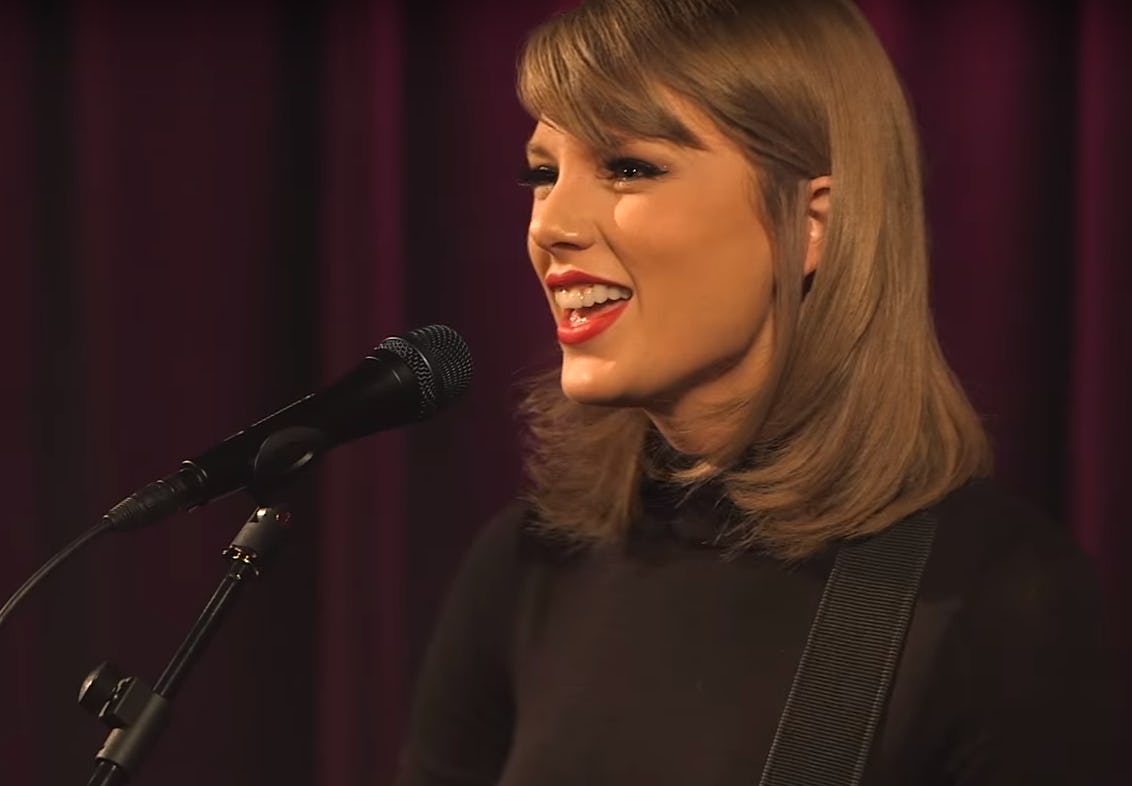 Although Taylor Swift is no fan extravagant displays like Katy Perry or Lady Gaga, when she performs we've come to expect a certain amount of glitter. So it was a total surprise when Swift wore an all-black outfit for a performance, and she was almost unrecognizable. In the video, Swift plays a stripped-down acoustic version of "Wildest Dreams" at the Clive Davis Theater, Idolator reports. Her style is toned down to match. Wearing just a pair of tights and a turtleneck, Swift looks every bit a singer-songwriter. As fun as it is to attend an arena performance with 50,000 other fans, it's refreshing to see Swift performing in such an intimate arena. After all, she rose to stardom by writing her own music, and those talents are put on display here.