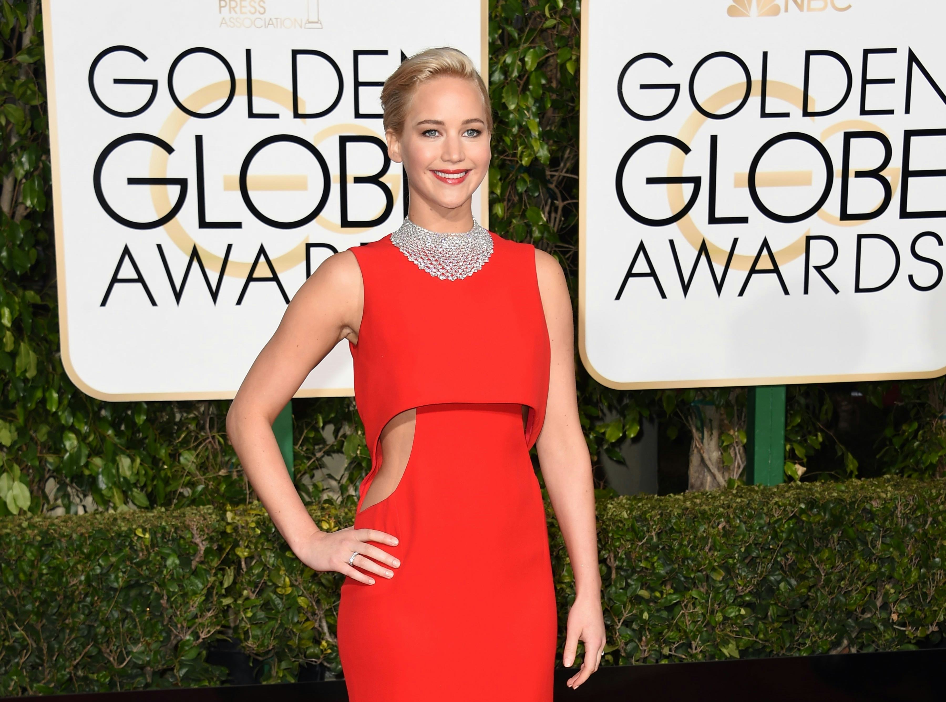The cutouts on Lawrence's Golden Globes dress give a totally fashionable edge to the simple frock.
