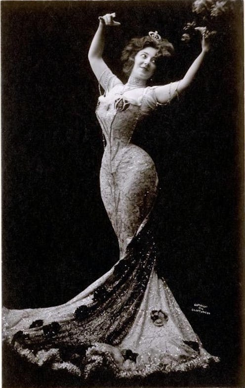 Even after all of the health warnings about tight-lacing, corsets didn't dwindle in popularity straight away. In fact, a new style was invented. In the early 1900s, the S-curve or S-line figure came into popularity. According to the MET Museum, "The S-curve form imposed on women’s bodies in 1900 was the result of a straight-fronted corset that started lower on the bustline than the corsets had a few years previously. The shape of the corset allowed the bosom to hang low and unarticulated in front while the hips were pushed backwards."