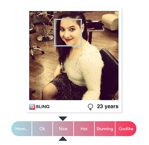 When Swiss dating app Blinq first launched, it had one notably unique feature poised to set it apart from Tinder, Hinge, Coffee Meets Bagel, or any other "swipe"-based hookup app: a hotness indicator. An unlike OkCupid's premium account attractiveness filters, the hot-or-not feature was available to users for free, and to use on themselves. Once you plug your image in, the app spits back your perceived gender, age, and hotness rating on a scale of "Hmm..," "Ok," "Nice," "Hot," "Stunning," or "Godlike."