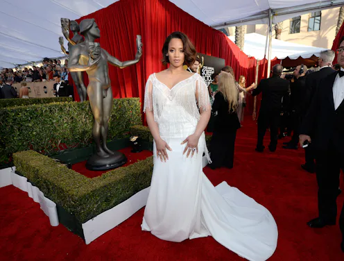 Ever since debuting her famous metallic silver 'do, Dascha Polanco has proved she is one to watch on the red carpet. It was no surprise that Polanco looked like a total goddess at the 2016 SAG Awards. In a floor-skimming white gown with embellished shoulders and an open back, she continues to shatter the expectations of what women who don't fit the conventional Hollywood mold are "supposed" to wear on camera.