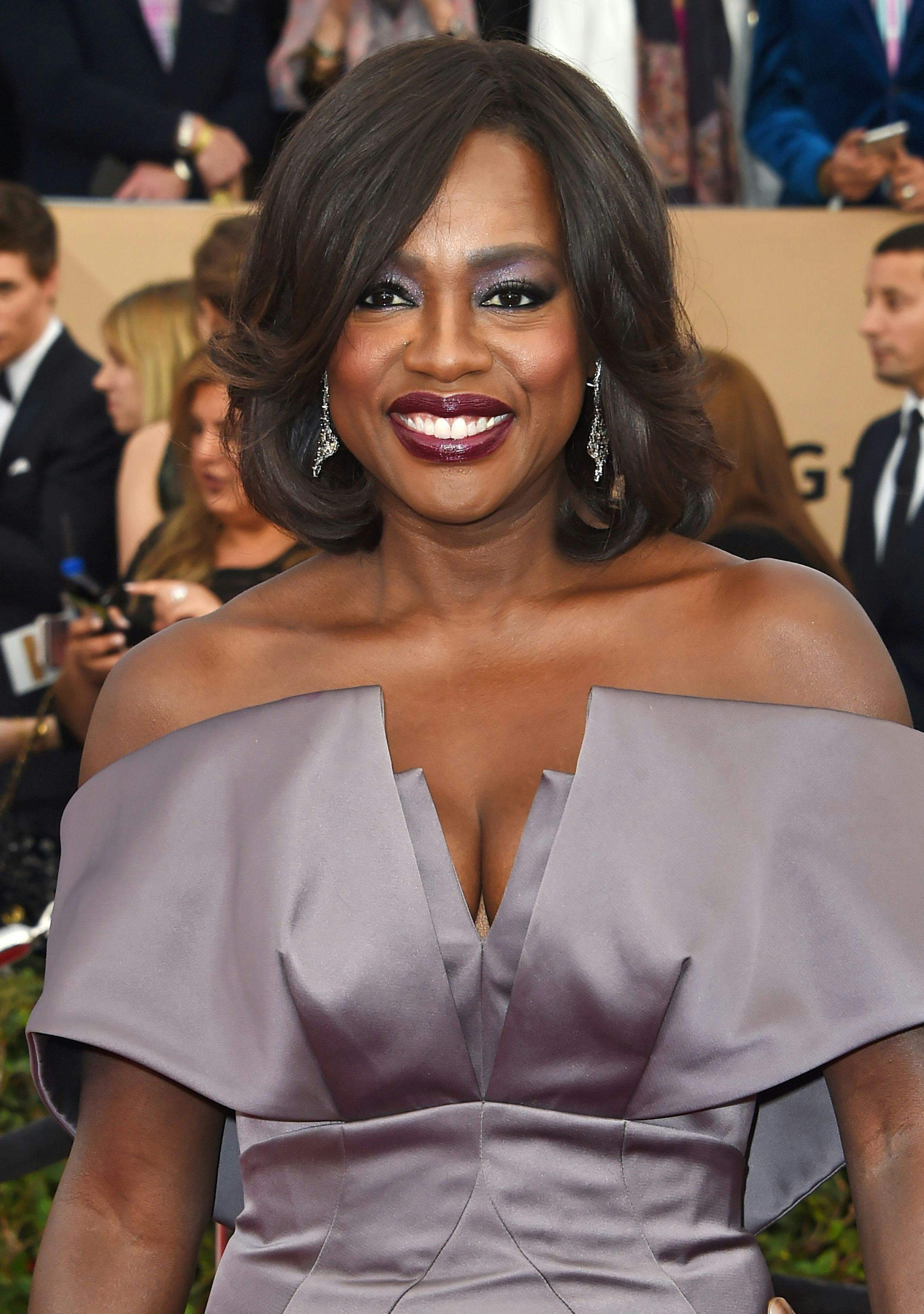 Can it please become a universal rule that when Viola Davis speaks, everybody listens? Last year, Davis became the first black woman to win an Emmy for Lead Actress in a Drama for her role on How To Get Away With Murder and gave an acceptance speech that likely will be quoted for years to come. The most poignant line was about how you can't win awards for roles that do not exist. This is still just as relevant, given all the talk about the Oscars and the lack of diversity among nominees. This came up in conversation at Saturday's SAG Awards. Backstage at the show, Davis talked to People about how although she's enjoying the conversation that's happening right now, there's an important message to keep in mind. She said,
