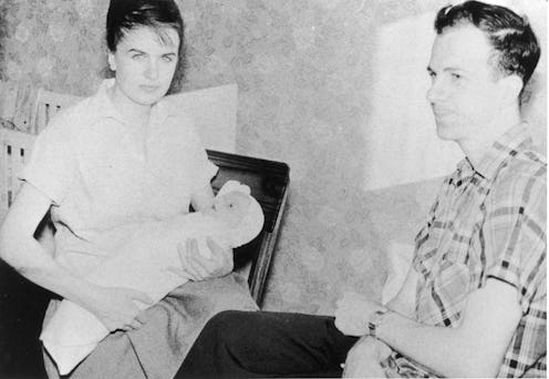 This is a family photo of Oswald, his wife Marina, and their baby, June, in the 1950s.
