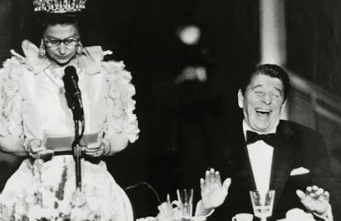 Not many people get to laugh at Queen Elizabeth's jokes, and Reagan couldn't control himself. The photo was taken in 1983, in San Francisco.