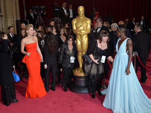There are the five nominees for the Academy Award for Best Actress — Jennifer Lawrence for Joy, Cate Blanchett for Carol, Saoirse Ronan for Brooklyn, Brie Larson for Room, and Charlotte Rampling for 45 Years — and they're flanked by other impressive contributors to the field of acting. Everyone from Viola Davis to Alicia Vikander to Diane Keaton to Lupita Nyong'o to Rachel Weisz to Helen Mirren to Gugu Mbatha-Raw to Jane Fonda is included on the cover, and the sight of them all spread out together, staring straight into the camera and forming a solid wall of no-nonsense lady power, honestly gets my pulse up. In the best way.