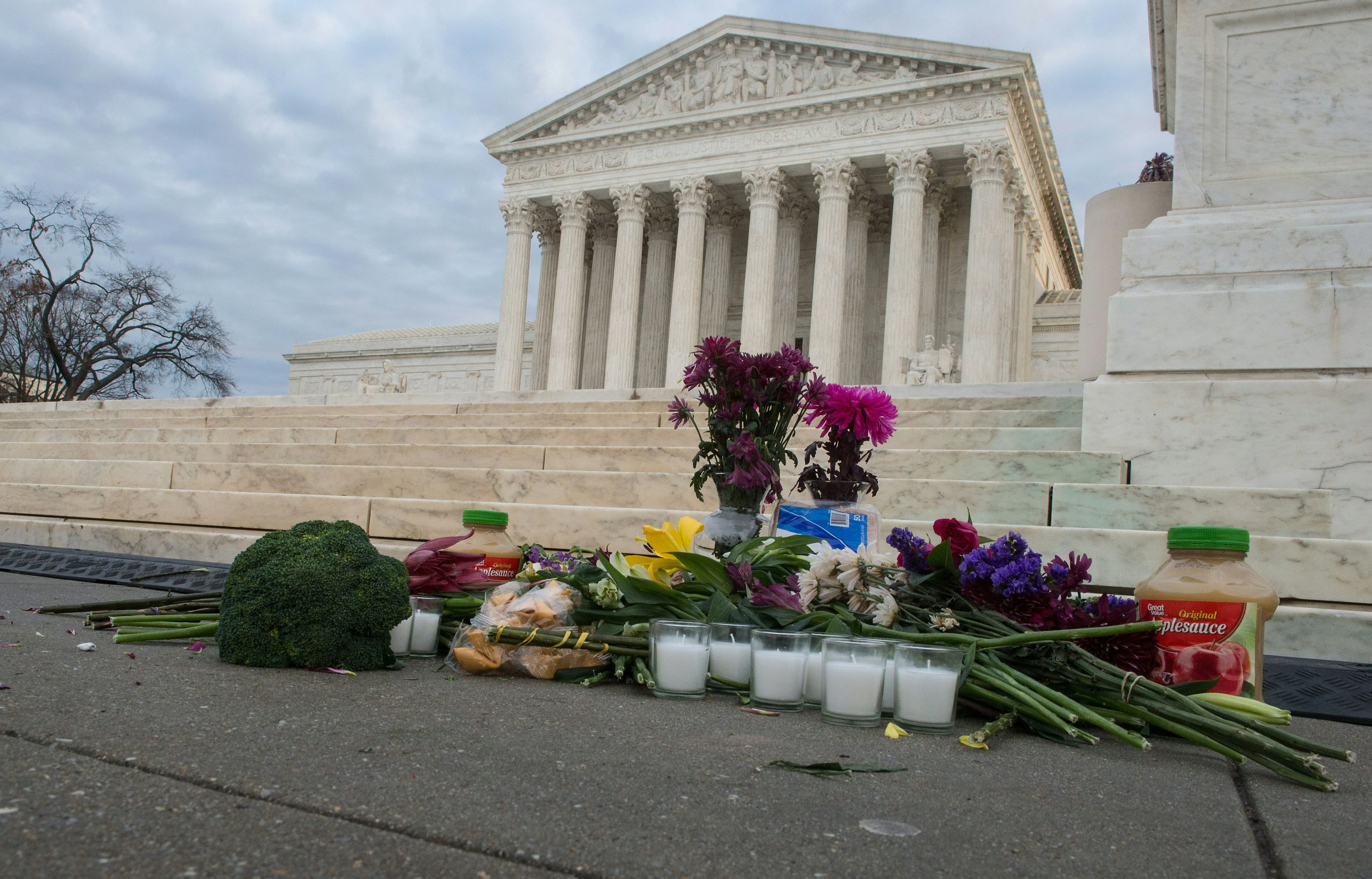 The "pure applesauce" reference harkens back to Scalia's Obamacare dissent, in which the justice used the exclamation to convey his surprise at such a ruling. Even fellow Associate Justice Ruth Bader Ginsberg made mention of applesauce and many other iconic Scalia-isms in her tribute to her colleague following his passing. Applesauce wasn't the only food item that has been left among the flowers and copies of the constitution to honor Scalia's memory. Bouquets of broccoli evoke Scalia's oral argument against Obamacare from 2012. Scalia used the vegetable as a symbol for his fears of how far-reaching the Affordable Care Act could become. He questioned Obama administration lawyer Donald Verrilli with this memorable quip:
