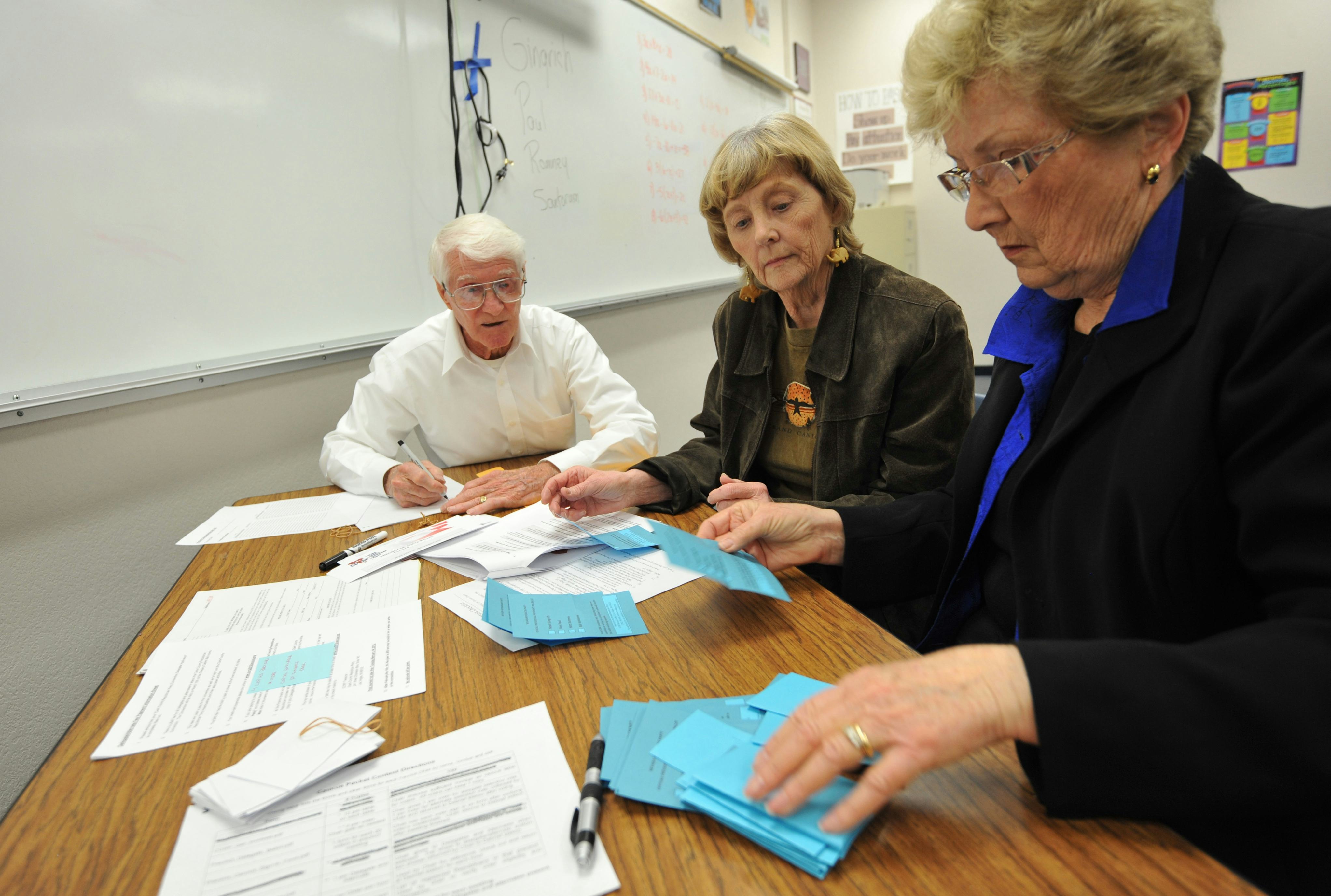 Republican voters in Nevada caucused for the GOP candidate they want to see in the White House in 2017 on Tuesday night. Despite only five candidates remaining in the race, the Nevada GOP caucus ballots included the names of many old presidential hopefuls. Jeb Bush, Chris Christie, Carly Fiorina, Mike Huckabee, Rand Paul, and Rick Santorum were all on Tuesday's ballot despite the fact that many dropped out days and weeks ago.