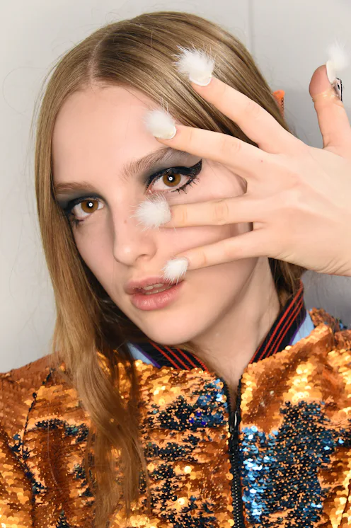 According to Mashable, fashion line Libertine was the one to bring faux fur into your morning makeup routine, introducing the trend during the A/W New York Fashion Week. Mashable reported, "The brand debuted the look at New York Fashion Week — undoubtedly a great time to experiment with new trends in beauty — thanks to Jan Arnold, style director and co-founder of CND nail polish."