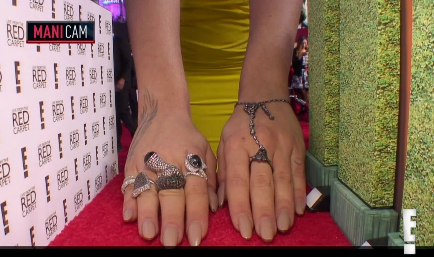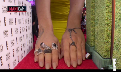 If you're asking yourself what the heck I'm talking about, let me refresh your memory. The Mani Cam was a tiny little red carpet replica that the E! hosts would ask celebrities (mostly women) to walk their fingers down, so they could show off their manicures. Consider it a mini catwalk for your hands.