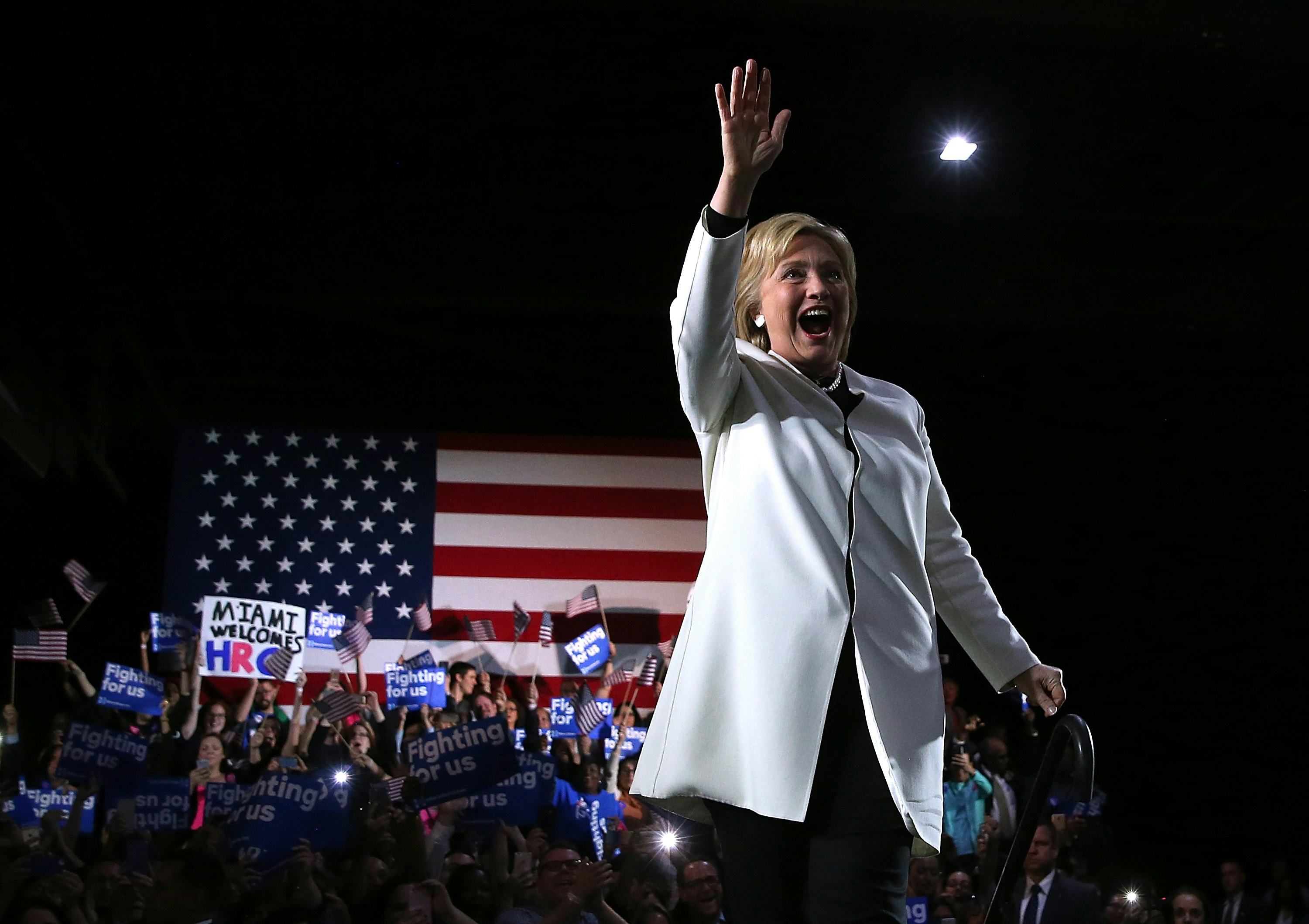 "It’s clear that the stakes in this election have never been higher," Clinton said to her audience after winning Texas, Alabama, Virginia, Tennessee, Georgia, and Arkansas. "And the rhetoric we’re hearing on the other side has never been lower... If we resist the forces trying to drive us apart, we can come together to make this country work for everyone."