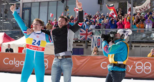 British ski-jumper Eddie Edwards, known fondly as Eddie the Eagle, is in the spotlight once again, 26 years after he first shot to stardom at the 1988 Winter Olympics. Edwards' unlikely road to the Olympics is now the basis for the new film Eddie The Eagle , starring Taron Egerton as Edwards. In the '80s, the skier shocked the world when he willed himself into the Olympics as an amateur — the only British man who wanted to compete in the sport on an international scale. Though he lost spectacularly, coming in close to last, Edwards' can-do spirit and positive attitude made him an instant celebrity.