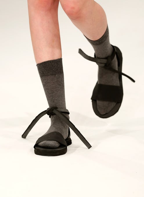 The much loved and loathed trend of wearing socks with sandals could also be attributed to the resurgence of the popular '90s trend: jelly sandals. These quirky, plastic shoes enabled millennials to give a nostalgic nod to their childhood, while also looking cool AF for rocking this reborn '90s fashion. For some people, brand new jelly sandals sometimes hurt, due to their unyielding plastic frames, so IMO socks were a necessity to help you get through a day of wearing jelly sandals. This trend was taken one step further by the addition of cutesy, frilly ankle socks, which looked like the socks we used to wear growing up. These adorable ankle socks really complemented jelly sandals and added to their overall fun and frivolous vibe.