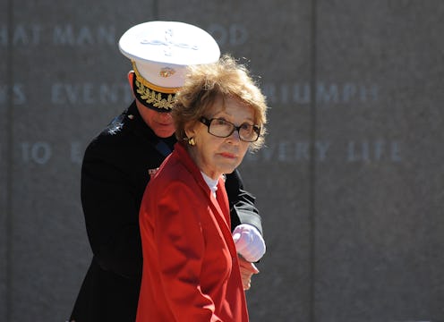 On Sunday, sad news broke that former First Lady Nancy Reagan had died at age 94. According to The New York Times, Reagan passed away from congestive heart failure in her Los Angeles home. Married to President Ronald Reagan in 1952, the First Lady will be remembered for her hard work on a number of high-profile campaigns throughout the 80s and 90s — perhaps most notably, her "Just Say No" anti-drugs campaign she launched in 1986. But despite her many years spent in the political and social spotlights, Reagan's ailing health in later years forced her to spend less time in the public eye. In fact, Nancy Reagan's last appearance is believed to have been at her 94th birthday celebration on July 6, 2015.