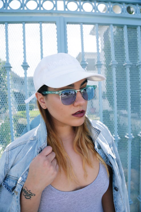 Thankfully, Aboulhosn is paving the way and proving that any and all of the "plus size fashion rules" social dogma might want to throw at us simply won't stick. The bodycon jumpsuit she's rocking in "Skin Tight" is the basic catsuit by Downtown Virgo (available up to a size 3XL). It is both casual and clingy, but looks perfect paired with other plain items, like a white cap, blue sunglasses, a denim jacket (oversized, of course), and simple, gray Adidas sneakers.