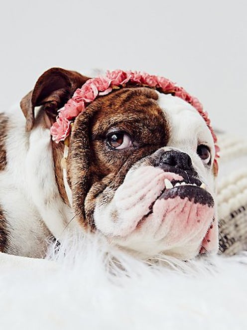 Drop everything that you're doing and gear up for the newest trend of the season: puppy flower crowns, designed by Free People. This is not a drill, people of the Internet. We can now Coachella-out our canines. To be honest, I don't know how we've gone this long without pooch-friendly florals.