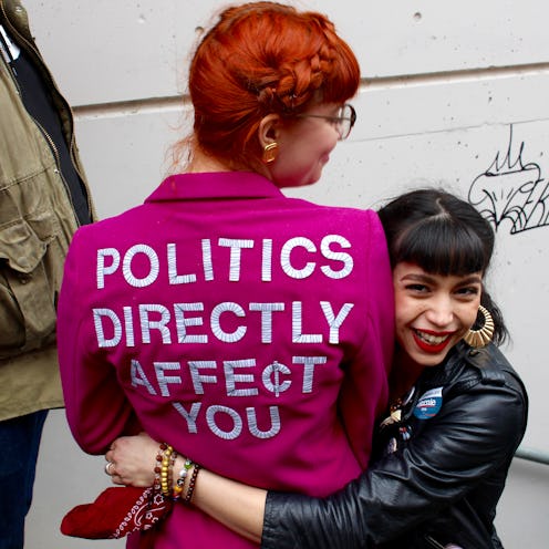 "He's a candidate for the people, he believes in what we need for this country, and [he] is going to lead us there," Amy Bragg, 27, tells Bustle. When I ask her why she thinks that Sanders is the best candidate for young women voters to support, she says, "To find equality, we need the proper infrastructure, and he's going to build it for us."