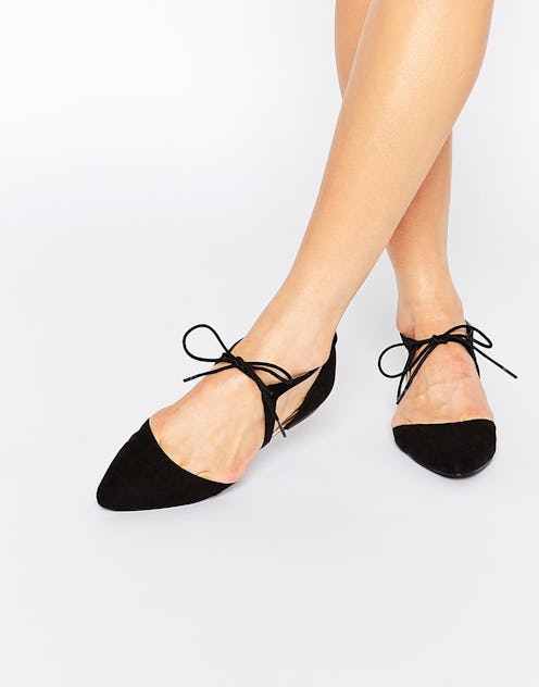 Oasis Tie Up Cut Out Pointed Flat Shoe, $38, ASOS