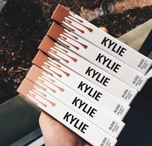 Oh, I like "Like." As in Kylie Jenner's new Kylie Gloss named "Like." It's a cocoa-y nude infused with blinding shine. Jenner debuted her latest lip innovation in a music video and the glosses are reportedly set to go on sale today, April 1. While her mega matte Lip Kits remain a hot property, Jenner is introducing a new product to her cosmetics range, once again starting a trend as opposed to following it. While the popularity of super shiny lips has waned in recent years during matte texture's dominance, Jenner is bringing gloss (and sexy) back with three nude-toned neutrals. Just like her first trio of Lip Kits —Candy K, Dolce K, and True Brown K— were suede-like neutrals, her first trifecta of glosses is the same in terms of shades. But certainly not in texture.