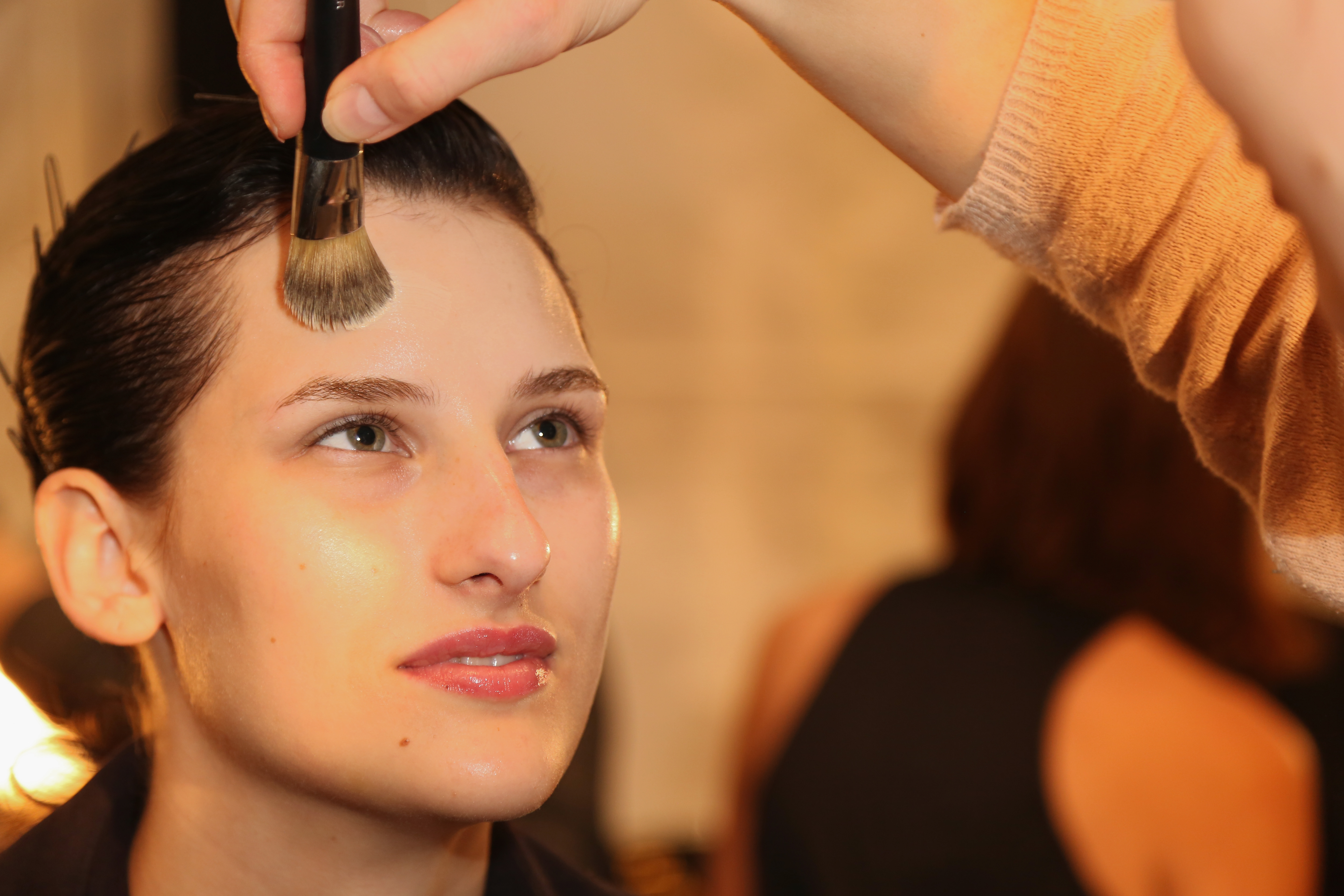 Simple ponytails and soft-focus skin complemented the clean lines of the clothes at The Row.