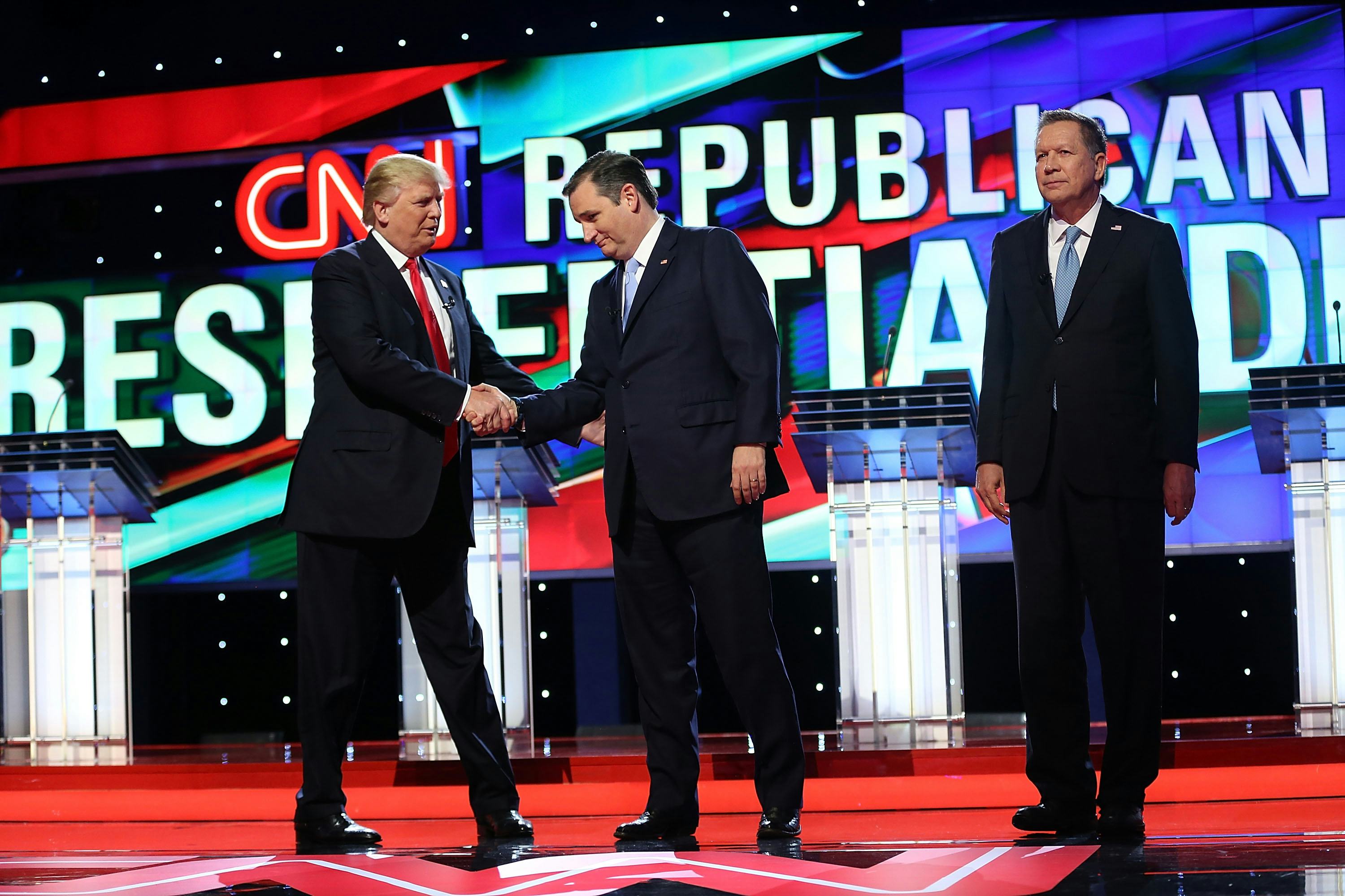 Trump and Cruz have not exactly come together to share their anti-Kasich sentiments, but both candidates have recently made statements (albeit separately) urging Kasich to leave the race. In said statements, Trump and Cruz referred to Rule 40, which states that a Republican candidate can only be on the ballot at the Republican National Convention if he or she has won a majority of delegates in at least eight states (Kasich has only won his home state, Ohio). Neither Trump nor Cruz are popular amongst the so-called Republican establishment, and both candidates want to ensure that it is impossible for Kasich — the establishment candidate — to be legally chosen as the Republican nominee at the convention in July.