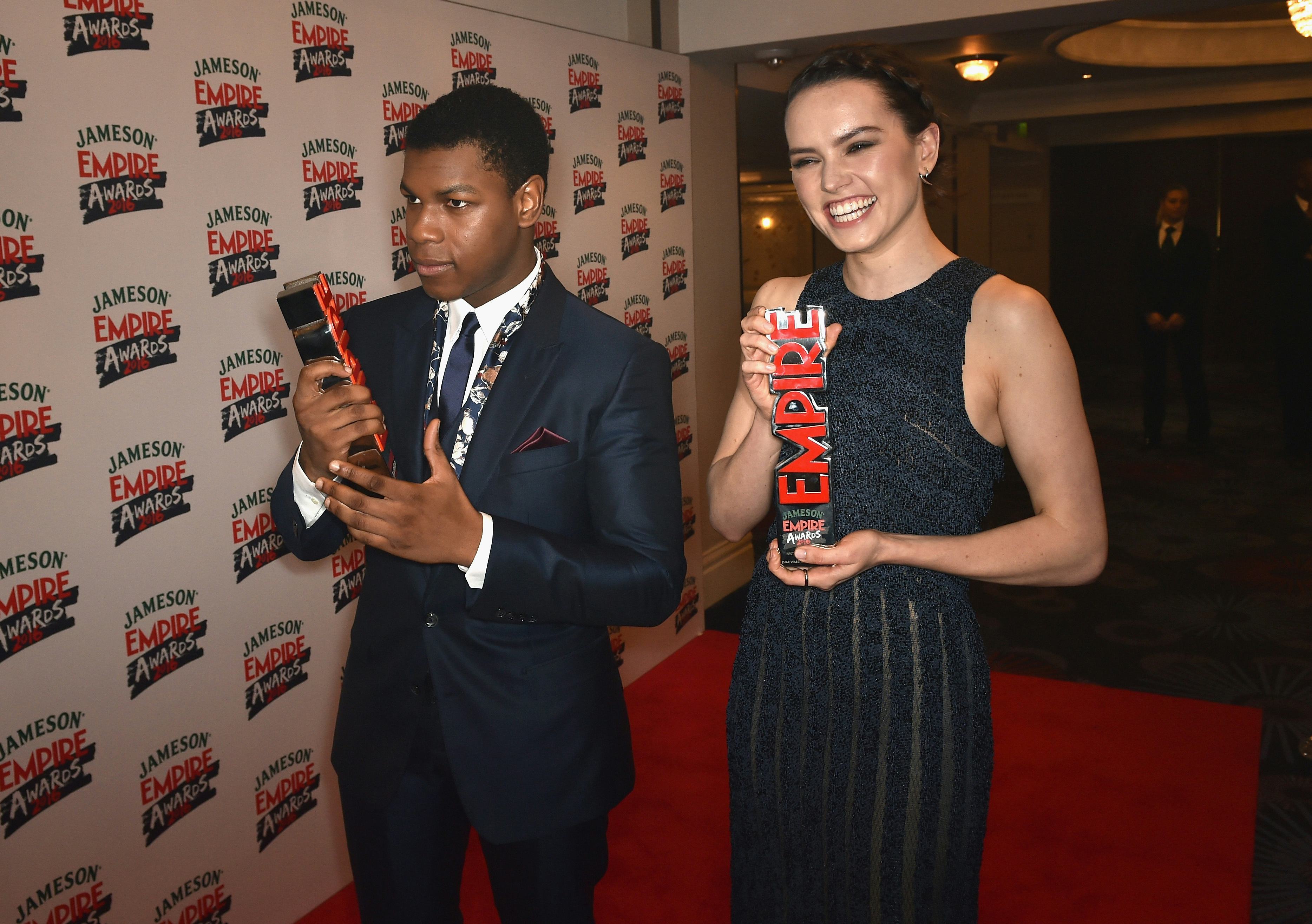 And even the categories in which the movie didn't win are telling of how much people loved it; in addition to the three areas it won, TFA was also nominated for Best Female Performance (Daisy Ridley), Breakthrough Performance (John Boyega), Best Action Performance (John Boyega), Best Virtual Performance (Lupita Nyong'o), Ensemble Cast, and Best Fight. Clearly, the MTV audience loved this movie, and they must be super pumped for the upcoming Rogue One: A Star Wars Story, the next adventure in a galaxy far, far away.