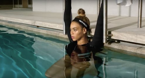 I use the word "might" because there's no official word on whether these pieces are waterproof, but from the looks of the launch video that the singer produced to announce her new label, some of them at least seem suitable for swimming, jogging in the rain, or some combination of both. Sure, this could just be some artful cinematography, but I'm not sure Queen Bey would play with our hearts like that. The two-minute advertisement features an awful lot of water, and even shows Beyoncé taking a dip in a pool wearing an Ivy Park bodysuit and then slipping on some branded pool slides (fingers very tightly crossed that these are actually going to be available for purchase).