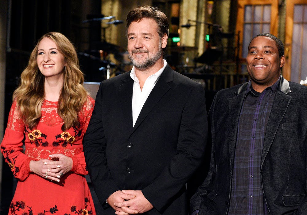 When it was announced that Russell Crowe would host the April 9 episode of Saturday Night Live, I admit I was afraid. He just didn't seem like he had much of a sense of humor. I know he's in the upcoming dark comedy The Nice Guys, but he seems like more of the straight man in that movie. The rest of his work just doesn't scream comedy, you know? But, it turns out, Russell Crowe's SNL appearance shows he can be just downright goofy.