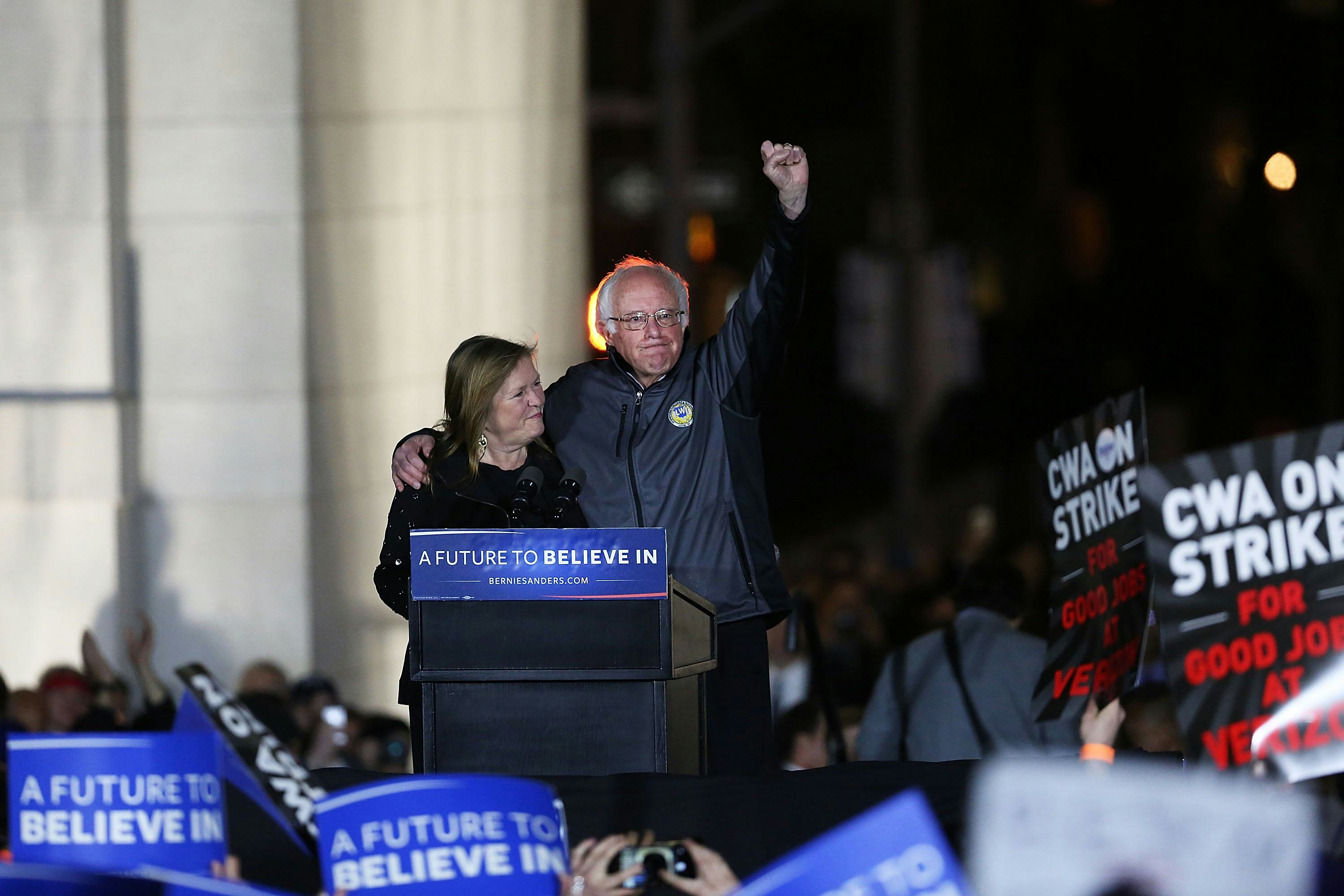 With the next Democratic debate coming up on April 14, Bernie Sanders held a rally on Wednesday night in New York City. The Sanders rally took place in Washington Square Park, and 27,000 supporters attended the event. When I first saw footage of the event, I was not struck by the massive turnout, but rather by the outfit Sanders wore as he stood in front of the Washington Square Arch and addressed the cheering crowd.
