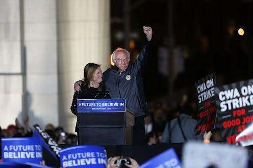 In photos from the rally, Sanders is not wearing his typical suit, but rather a track jacket of sorts. Essentially, the candidate looks as if he could have been heading for the gym after giving his stump speech in the park. The jacket is gray polyester, zips up the front, and is utterly casual. Now, I realize that Sanders' unpolished look is part of his appeal, but his casual outfit choice highlights a double standard in this election. Sure, it was a cold night in New York and his jacket looked cozy, but Hillary Clinton likely would have made sure to stay warm and look polished in the same situation.