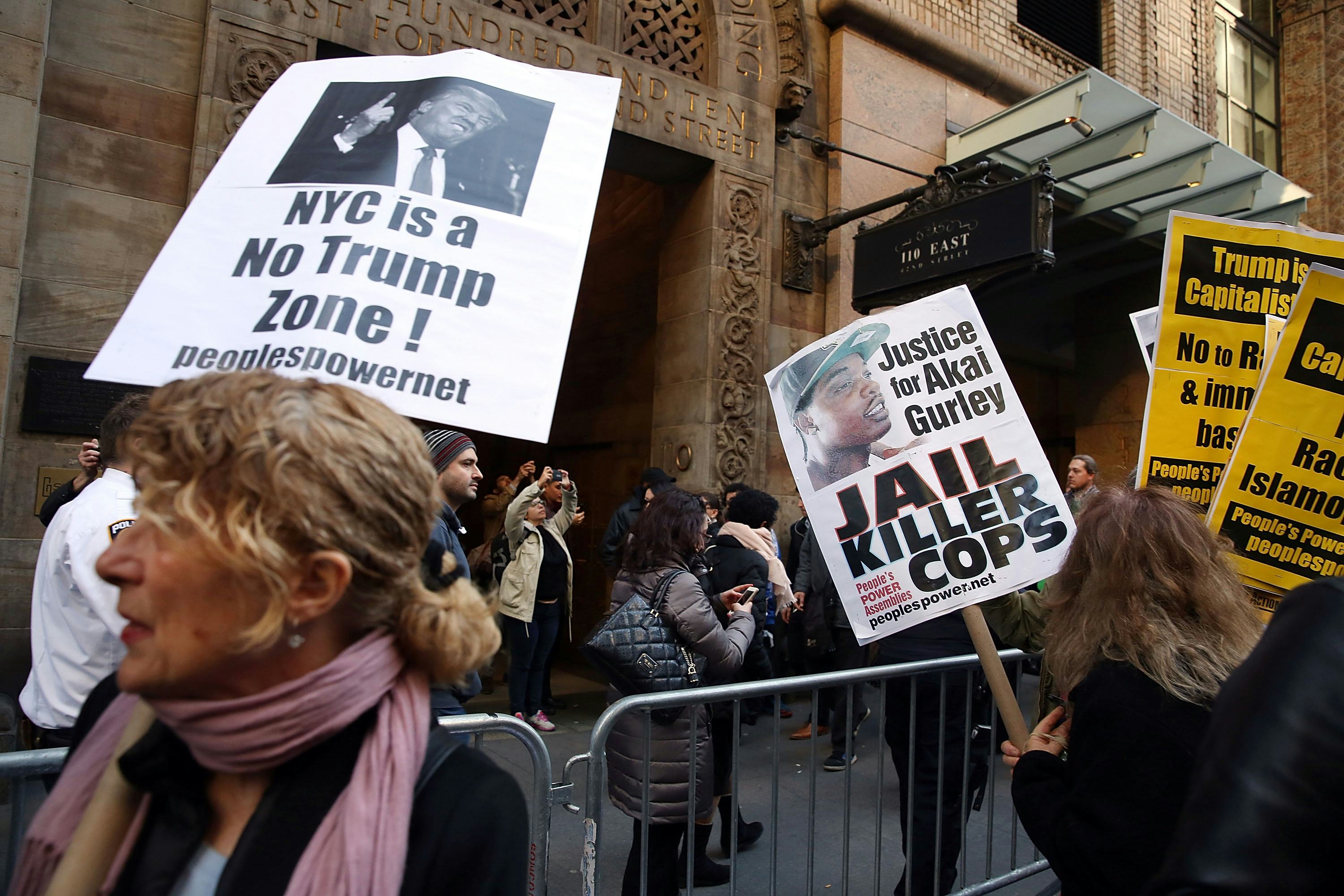 Since the protests began several hours before the start of the gala, the protesters have managed to storm the Grand Hyatt Hotel in Midtown, where Trump was set to speak. And because they combat racism and bigotry specifically, their efforts have been largely focused on GOP front-runner Donald Trump (who, of course, has built his campaign on platforms of racism and bigotry). According to the local New York station WCBS 880, protesters were able to get inside the building, ascend to the balcony level of the hotel, and burst through to the press room, horrifying the gala's attendees. Seven people have been arrested so far.
