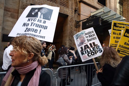The New York State Republican Gala is usually a haughty, black-tie affair, and Thursday evening's event was to be no exception. All three Republican candidates were to convene for what would most likely be the classiest event they have attended together (since the debates, voters know, are definitely not classy shows), but thankfully, protesters had gathered outside well before the GOP Gala was set to begin to disrupt that bogus image. Hate Free NY, a group that describes themselves as "New Yorkers who reject all forms of racism and bigotry," started a series of protests outside the gala's grounds, with the hopes of reminding everyone what these GOP candidates are really about (and it isn't hors d'oeuvres).