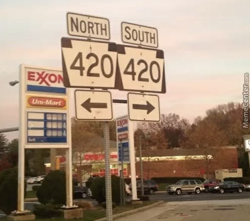 Your calendar tells you that today is 4/20, but that date isn't as innocent as it may seem. For many, April 20 is also unofficially known as National Weed Day, and because we live in an age where the internet mandates an overabundance of hashtags and viral hits to honor pretty much anything, here is your roundup of 4/20 memes and tweets that help explain exactly what this day is all about. Regardless of whether or not you actually participate in 4/20 revelry yourself, these memes will at least make you feel like you're still part of the loop — and at the very least, you'll at least have some idea what the heck Twitter is talking about (#happy420).
