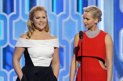 But don't worry, it's not all Schumer calling BS on Lawrence's statements. In fact, there's a pretty sweet moment there, too, when Lawrence tells the story of how they first started talking after she saw Trainwreck and immediately emailed Schumer to find out if they could work on something together. Schumer didn't hold back when it came time to rave about Lawrence's writing talent. That's a good friend right there — the kind who will make fun of you when you're in on the joke, but who will also celebrate you for your best qualities, too.