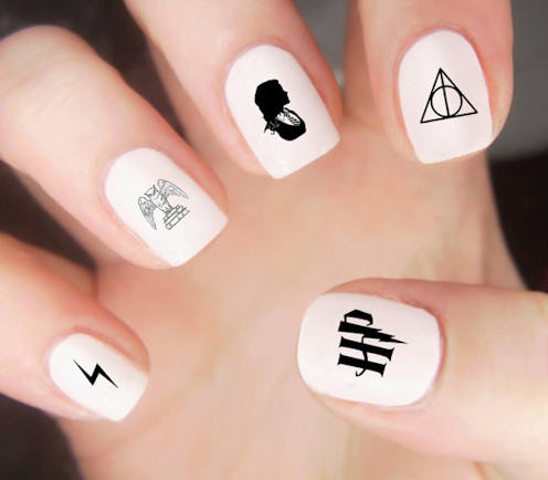 Start simply and beautifully with a classic Harry Potter nail decal. From lightning bolts to deathly hallows, this press-on decals come in a great variety (the Etsy shop also has a second option with a dark mark, stag, and silhouette of your favorite trio), and they're super easy to apply. Buy them from LoveByLunaCo on Etsy.
