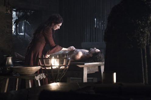 Unless you've managed to avoid all social media platforms over the last 14 hours, you know by now that Jon Snow is alive on Game of Thrones , thanks to a spell that Melisandre performed over his then-dead body. But as for how Melisandre's spell resurrected Jon Snow, that part still remains a bit of a mystery. You see, if it was just the spell itself, you'd think the effects would've happened instantly. But instead, it wasn't until Melisandre and Davos left Jon Snow alone, believing that the attempt had failed, that he truly came back to the land of the living. Was this just for dramatic effect or does this implicate that something else, aside from the spell, played a part in the Lord Commander's return?
