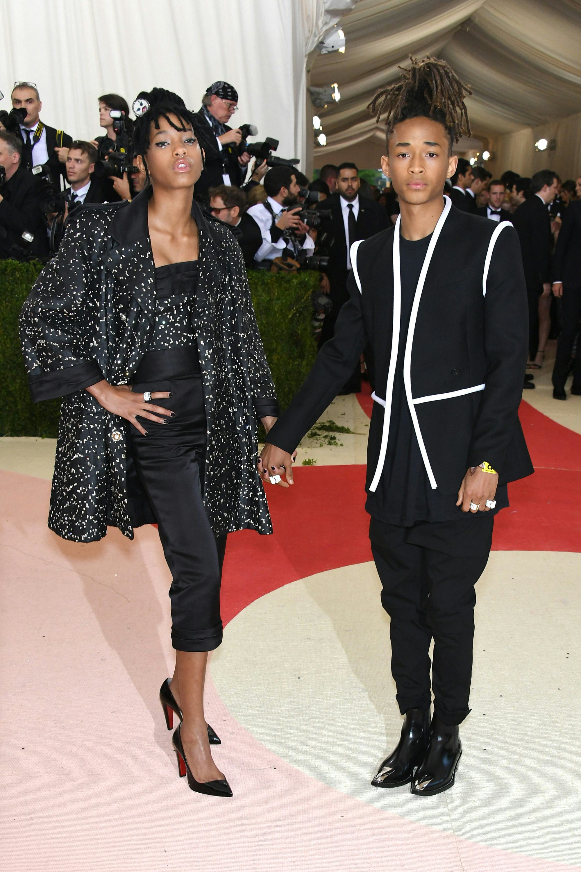 The kids of superstars tend to have seriously impressive fashion sense, and Will and Jada Pinkett Smith's stylish teens are no exception. Tonight, Willow and Jaden at Met Gala 2016 are completely freaking dazzling. It's the sibling duo's first Met Gala ever, and their looks are definitely not disappointing.