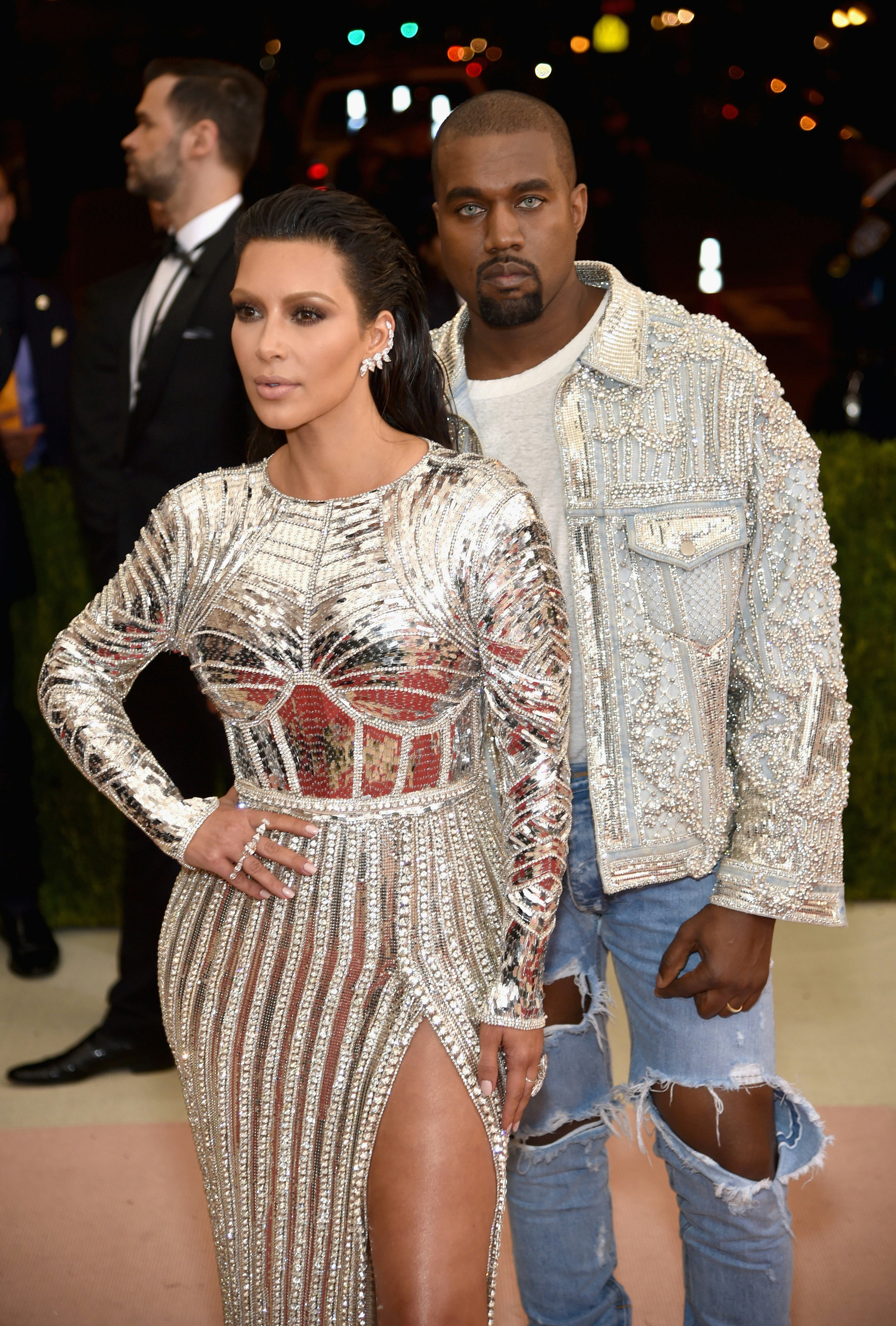 This year, to fit the "Manus x Machina: Fashion In An Age Of Technology" theme, West took it up a notch: He swapped out a formal tux for an encrusted Balmain jacket and distressed jeans. He even switched out his eyes, wearing icy blue contacts for the night. Meanwhile, Kim K continued her lega-slay by wearing an insanely form-fitting Balmain gown that made her look like an empress who decided to come back from the future, simply to let us all know that her fierceness will span across centuries.