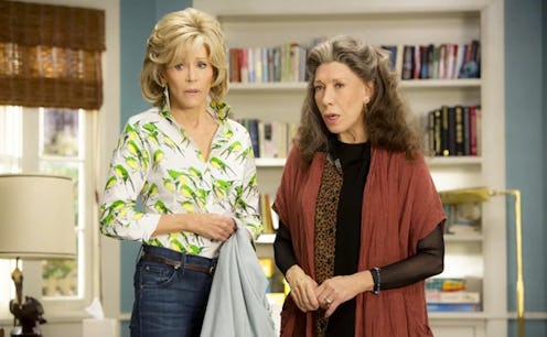 To jog your memory, Grace & Frankie follows the lives of Grace (Jane Fonda) and Frankie (Lily Tomlin) after their husbands (played by Martin Sheen and Sam Waterston, respectively) come out as gay and seek divorces in order to marry each other. The comedy explores the fallout between the couples, how it affects their adult children, and, primarily, how Grace and Frankie are moving forward and rediscovering themselves with their new, unlikely friendship. The show is hilarious and feminist and proves that women are capable of being funny, falling in love, and doing interesting things at any age. (Imagine that!) While the intriguing premise lets us know where the show started, fans may need some help remembering where the series ended up. So, here is your Grace & Frankie season 1 recap, explaining where all of your favorite characters left off.