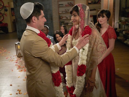 It only took five seasons of back and forth hijinks, but Schmidt and Cece are now officially married on New Girl . During Tuesday night's New Girl Season 5 finale, viewers witnessed as this dynamic duo made the best out of every situation, starting with the fact that Schmidt completely missed the entire reception due to the fact that he was trapped on an airport runway. (Thanks, Cece's mom!) But thanks tot he power of LTE, he was able to FaceTime the gang for most of the event, which proved to be all sorts of adorable. And when he finally did manage to get home later that evening, the ceremony was there waiting for him.