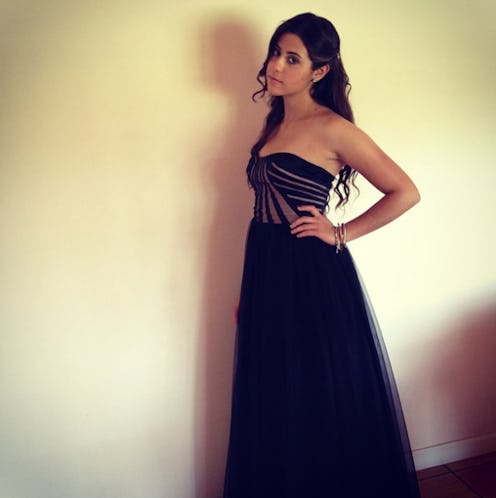 I wore a black princess dress with a corset and tulle skirt. I still think the dress is super pretty and unique for a prom ensemble. But it weighed about 80 pounds and was way too long. I wore super high heels that I was stumbling in, and had the makeup artist pack on foundation and hairspray, only to make me look like a doll. Even though I loved the gown, it was just a bad combination of pieces.