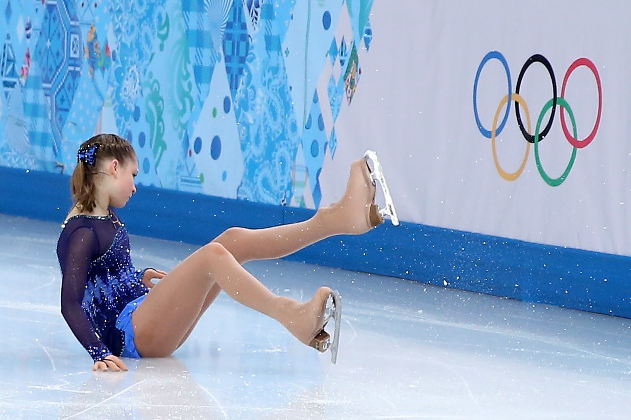 The figure skating competition in Sochi was dealt a surprising hand when Russia's Yulia Lipnitskaya fell during her short program. Lipnitskaya, 15, was a favorite in the Sochi Olympics after a stunning performance that helped Russia clinch gold in the team figure skating event. Following her stumble on Wednesday, however, she's ranked fifth in the women's figure skating standings, trailing South Korea's Yuna Kim, fellow Russian Adelina Sotnikova, Italy's Carolina Kostner, and the United States' Gracie Gold.