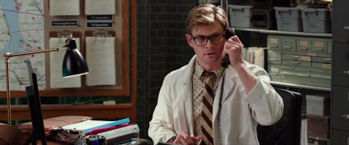 Because cue the scene with Chris Hemsworth, who plays Kevin the jovial secretary, being possessed by a ghost outside of the Ghostbusters' headquarters. The ladies are pretty torn up about it, but the thing is though, he seems fine after the initial possession. You know, if you count supernaturally glowing and driving away on one wheel of his motorcycle with precision as fine. OK, so maybe he seems a little out of sorts, but in a Peter Parker-gets-bitten-by-a-radioactive spider-and-turns-into-Spiderman type of way.