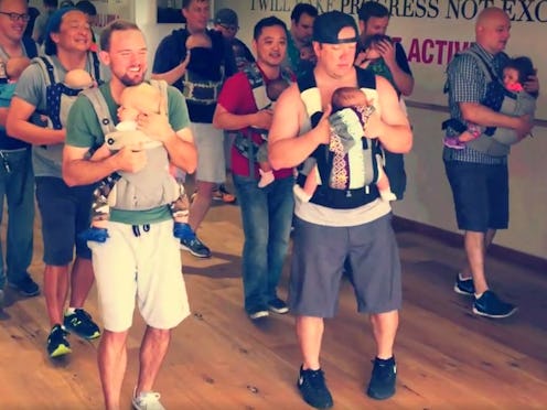 This video comes courtesy of GroovaRoo Dance, a San Diego-based company that offers babywearing dance classes to new moms and dads. GroovaRoo started when husband and wife team Amber and Meeshi Anjali decided to combine their interests: Amber is a birth doula and postnatal yoga instructor, and Meeshi teaches dance. At GroovaRoo classes, moms and dads learn line dances choreographed so that they can dance safely with their babies in carriers on their chests. It’s an opportunity for new parents to exercise, bond with their babies, and meet other parents. “There aren't a lot of activities where moms can feel comfortable bringing their babies and getting a workout,” Amber told TODAY Parents. “They come for the exercise, but then through the process, they find a community.”