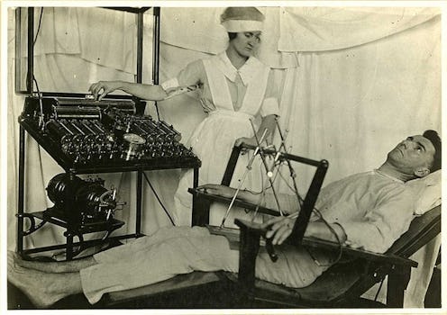Electricity-based therapy was one of the methods apparently available to help "cure" soldiers in this predicament. Yep, it was a precursor to electroshock therapy, and the Bergonic Chair, invented by Dr. Bergonic, ran electrical currents through prone soldiers with serious psychological conditions. We don't know very much about the Bergonic Chair or how widely it was used, but we can safely assume it wasn't particularly fun or helpful.