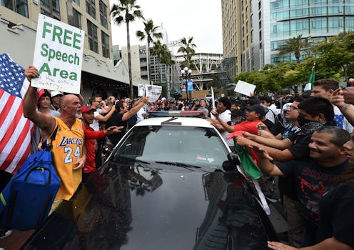 A protest outside a Donald Trump rally in San Diego turned violent Friday, raising more concerns over the likely Republican nominee, his presidential campaign, and his unapologetic rhetoric about race and immigration issues in America. According to reports, Trump supporters and local police clashed with anti-Trump protesters outside the San Diego Convention Center, where the presumed GOP nominee was holding a campaign rally in advance of the California primary. The anti-Trump demonstration targeted the candidate's harsh immigration policies, which are primarily aimed at Latino immigrants.