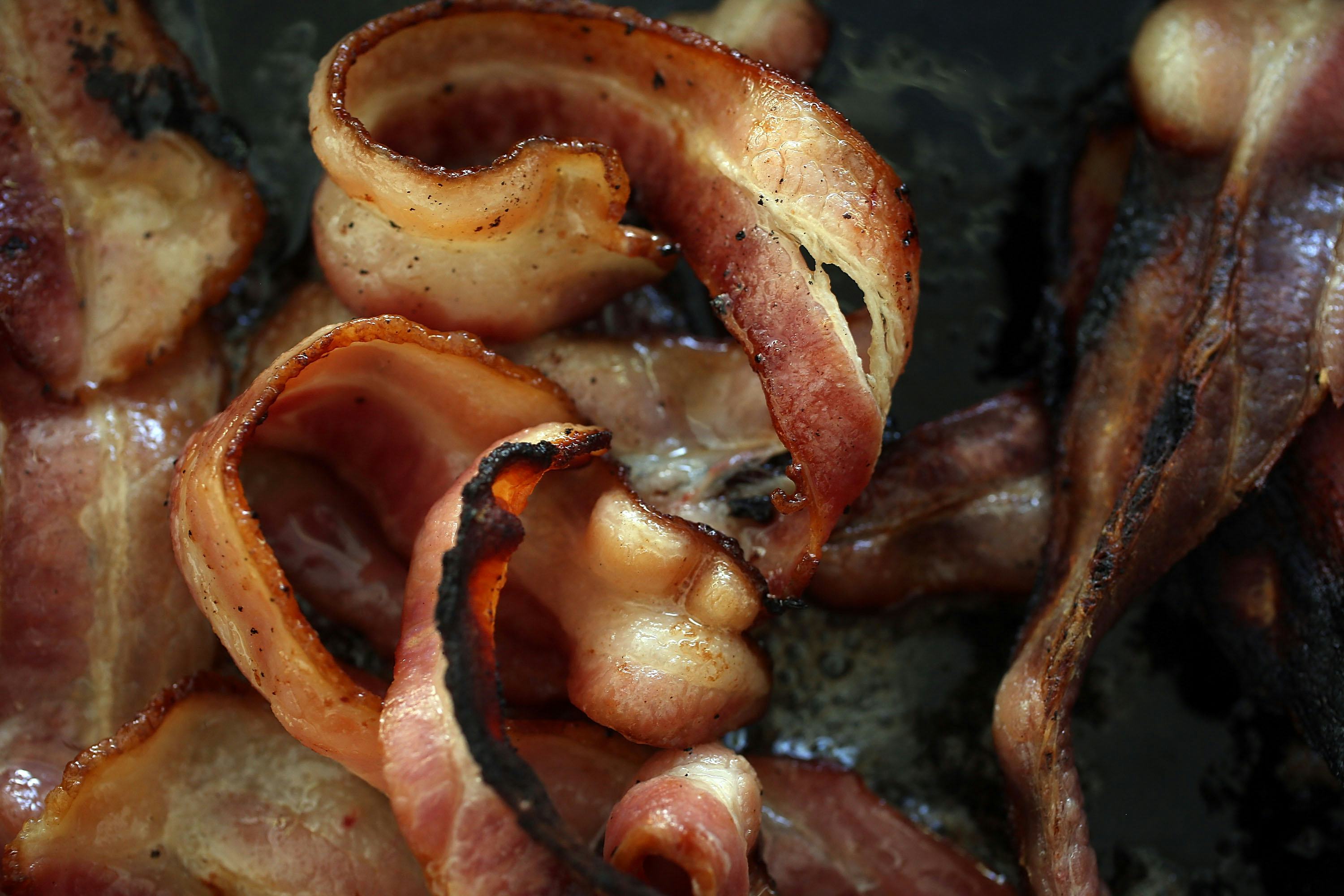 Americans love bacon. We use bacon in as many places as we possibly can. We eat bacon at breakfast, on the Super Bowl, and at Christmas. We make bacon cookies, bacon Pop-Tarts, bacon-wrapped caramel apples, candied bacon, even bacon-fried Twinkies — and bacon-fried Oreos. And it doesn't end with food. There's a bacon dating app. There's a church where you can literally worship bacon. There is bacon-scented underwear.